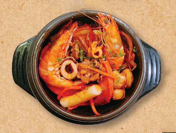 Tokbokki Thập Cẩm – bánh gạo dẻo mềm, sốt cay ngọt đậm đà kết hợp thịt bò xào thơm lừng, tôm, mực ngọt nước, dai dai, ăn là ghiền, cay nhẹ thôi nhưng cuốn cực mạnh